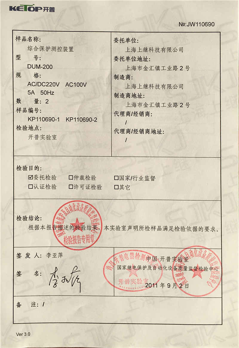 您現(xiàn)在的位置: 首頁 >> 客戶服務(wù) >> 資質(zhì)證書 > DUM-200檢驗報告