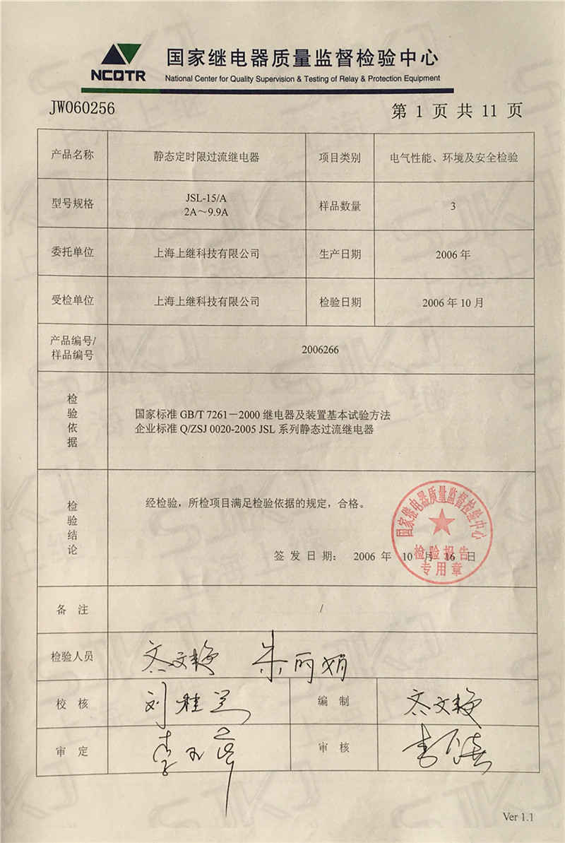 您現(xiàn)在的位置: 首頁 >> 客戶服務 >> 資質(zhì)證書 > JSL-15/A檢驗報告