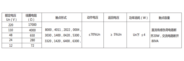 DZ-700/8000中間繼電器主要技術數(shù)據(jù)見表
